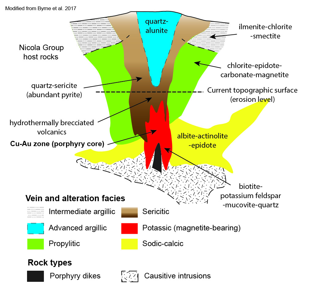 Figure 3. Schematic alteration zonation at the Lodi-Kirby Zones with exposure level. Modified from Byrne et al. 20171.